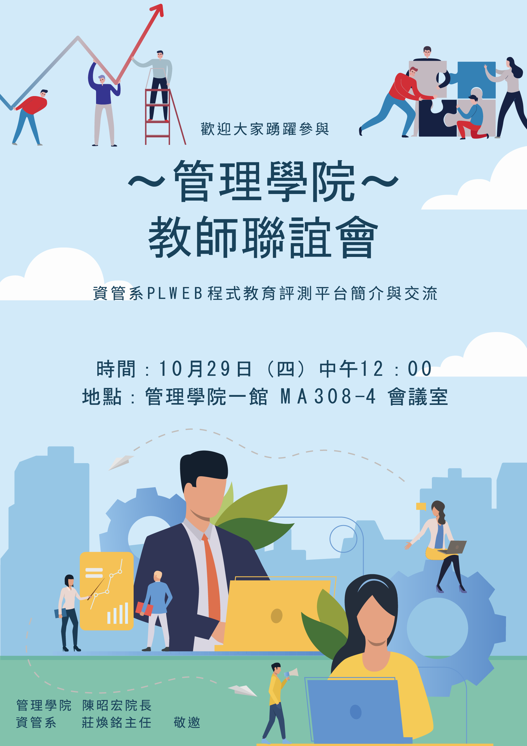 敬邀參加管理學院教師聯誼會~10/29(四)12:00