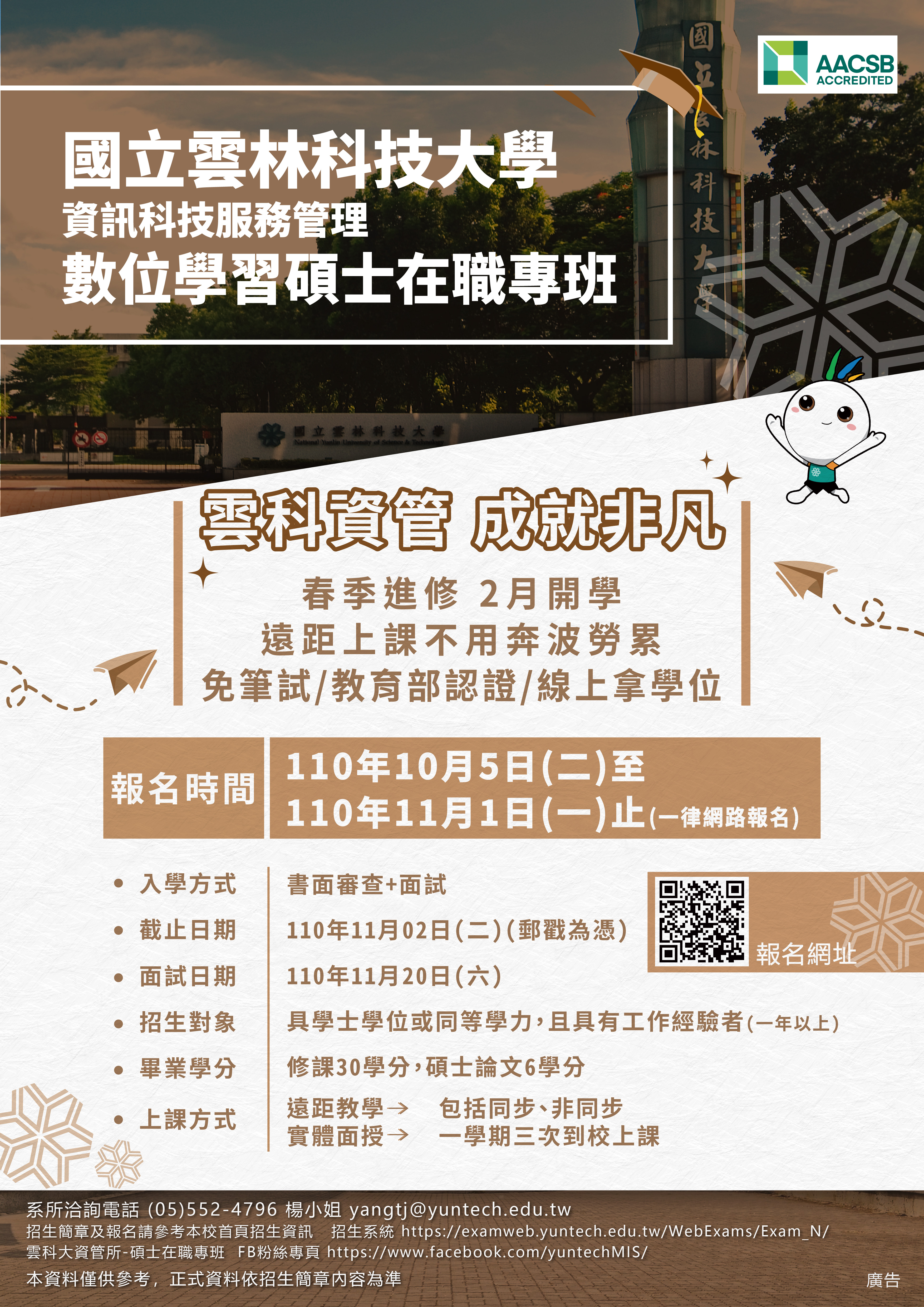 本校110學年度數位學習碩士在職專班(春季班)招生即將展開,