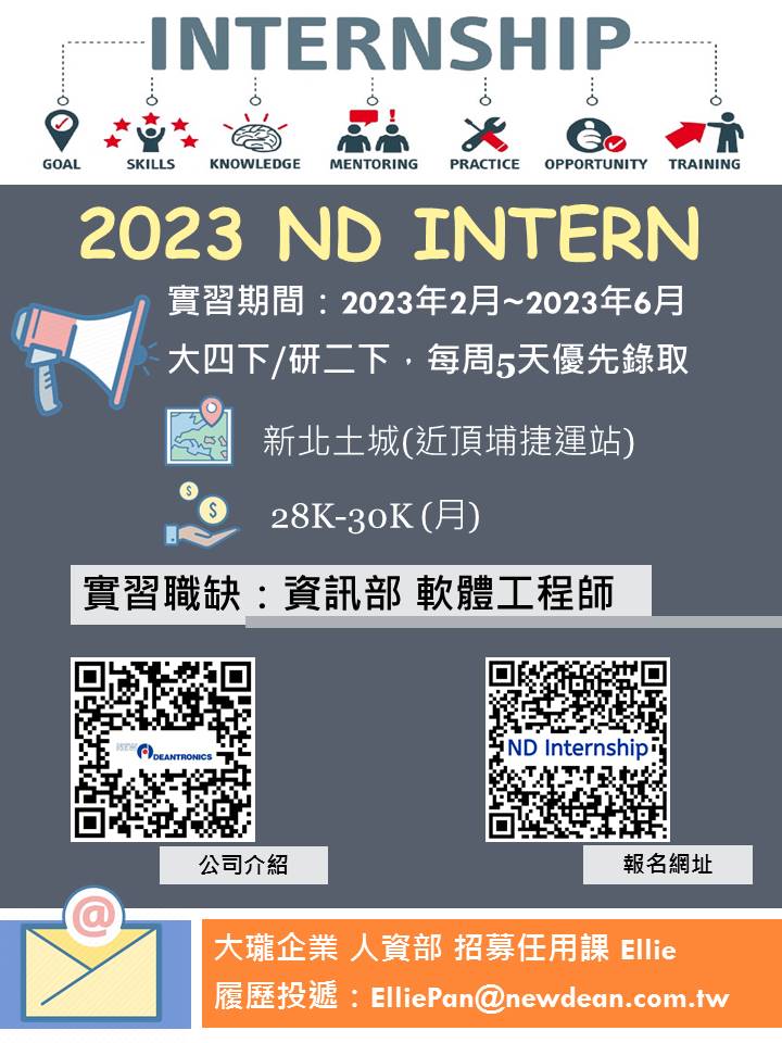 【實習期間】2023/02~2023/06(一周5天優先錄取)