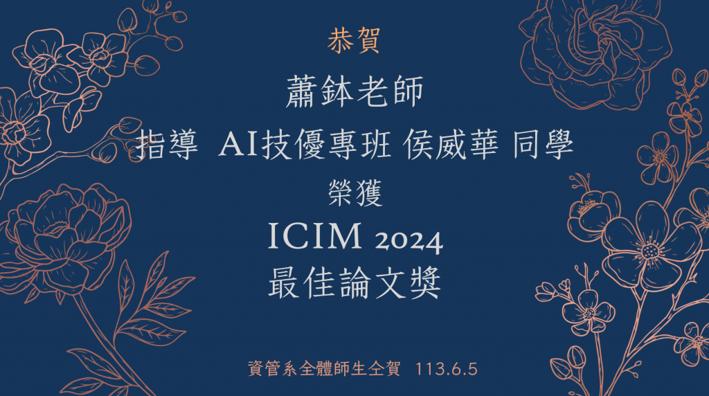 榮獲獎項:ICIM 2024 最佳論文獎
