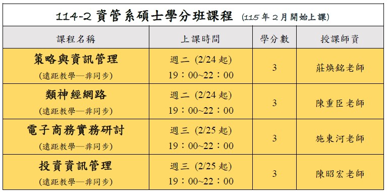 114學年度第2學期碩士學分班招生中